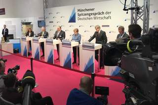 Bundeskanzlerin Angela Merkel (mittig) mit den Präsidenten von BDI, BDA, DIHK und ZDH beim Münchener Spitzengespräch der Deutschen Wirtschaft © BDI