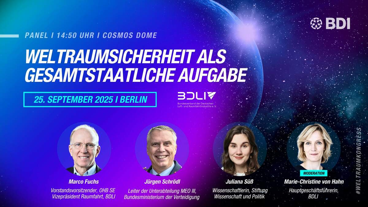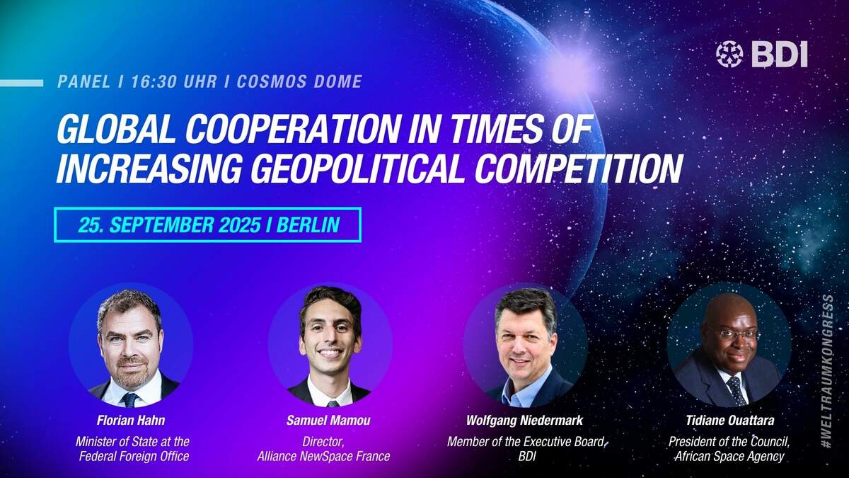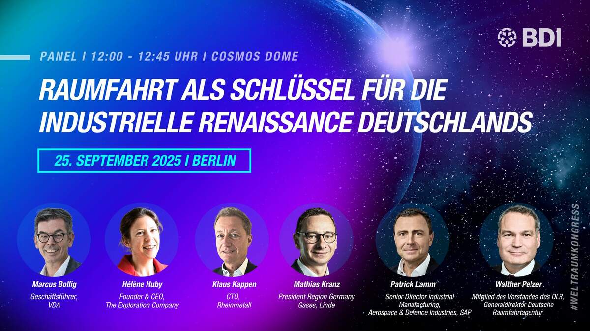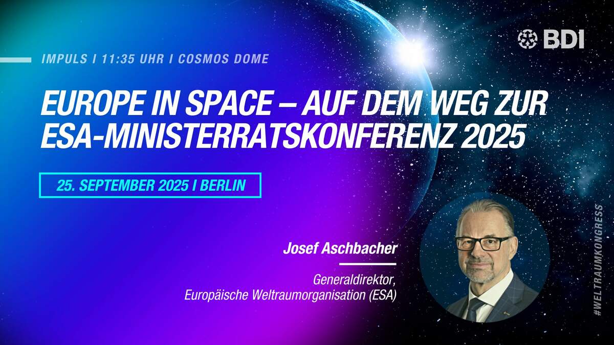 Im November 2025 entscheidet die ESA-Ministerratskonferenz in Bremen über Europas zukünftige Position im Weltraum. Der BDI-Weltraumkongress markiert den nächsten entscheidenden Meilenstein auf diesem Weg.